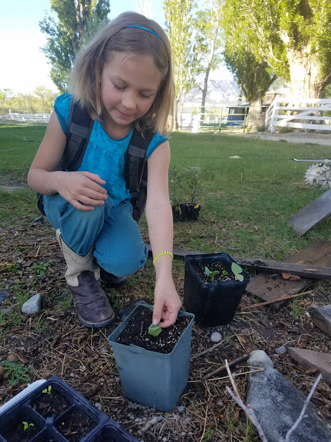 Thursday night before the fair is always a bit chaotic as the kids do their homework and then try to round up their fair projects. (Our school schedule is a bit wonky with the fair schedule, as we don't follow the same schedule as the rest of the county, so the kids start school before the fair and then have to take a day off to go attend it.) Here's Desert Girl getting some flower arrangements ready.