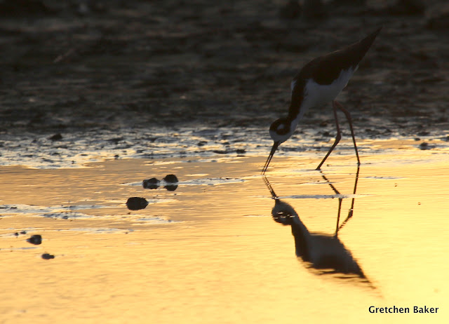 Not far from our house is a tiny reservoir. Desert Boy and I went down one day and found this beautiful Black-Necked Stilt. It's not counted on our Backyard Bird list, but I just had to show off this beauty.