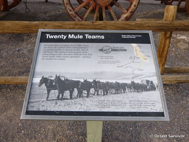 The Twenty Mule Teams are one of the iconic symbols of Death Valley, although most people probably couldn't tell you why. If you ever pick up a package of Borax soap, there's a good chance you'll see an illustration of the Twenty Mule Teams on it. Since we've started making our own laundry soap with Borax as an ingredient, Desert Boy recognized them.