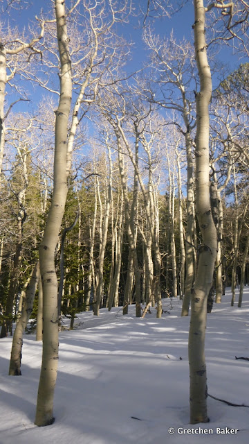 Then it was time to go down. I loved the late afternoon light on the aspen trees, but quickly realized I had left the trail.