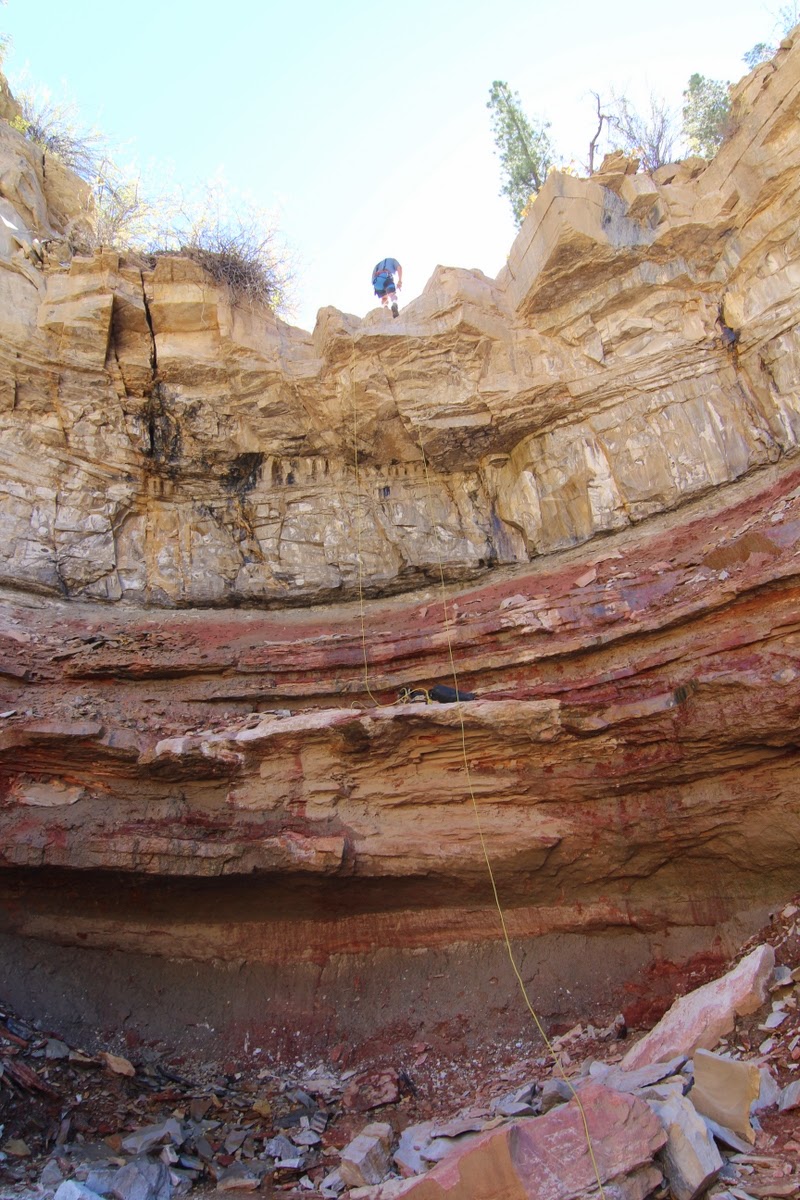 | I lowered both kids down this beautiful drop. Desert Boy was pretty sure he could rappel it, and now I am sure he could. But better safe than sorry! |