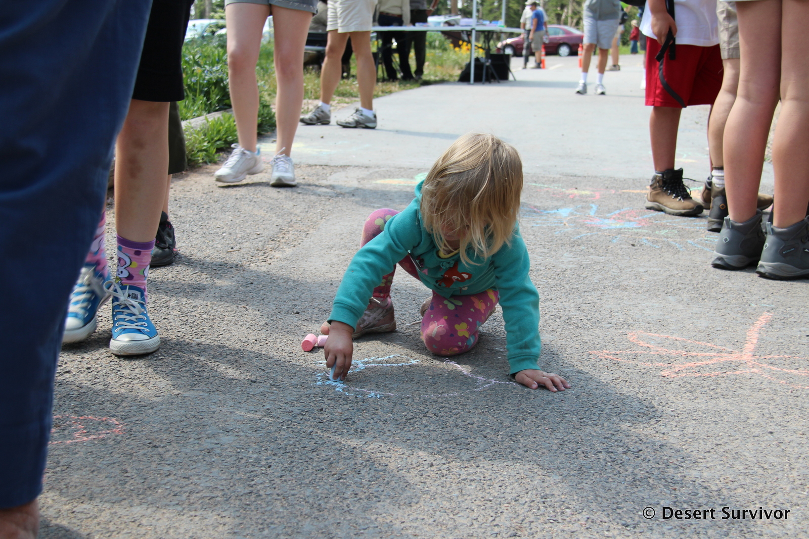 Desert Girl drew a beautiful wildflower with chalk on the walkway.
