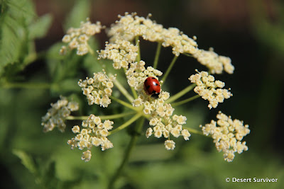 On their stems were tiny aphids, which were "milking" the plant for its juice. The aphids were being closely guarded by ants, who like to partake of the sweet juice. We also spotted a ladybug, who likes to come over and eat the aphids, but is excluded by the ants from eating their milkers. Such a cool little ecosystem on just one plant!