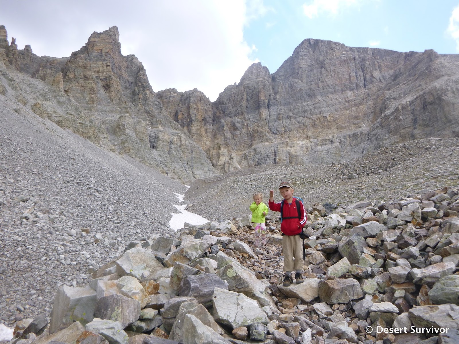 After all those snack breaks, the kids were in a good mood and had their hiking groove on. We continued past the bristlecone grove to the Wheeler cirque glacier.