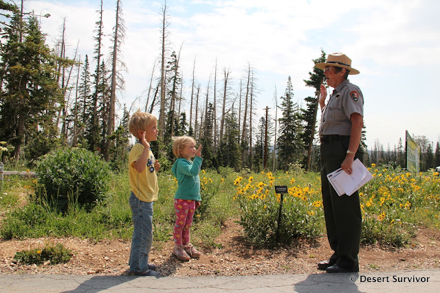 The BioBlast surely was a blast, lots of fun, educational programs. It had something for all ages. I highly recommend camping at Cedar Breaks (the hot showers totally won me over, along with the scenic views), although some coworkers told me about a less-than ideal campsite they got there that left them with a very different impression. Finally, the Wildflower Festival continues through July, and the high country is worth a visit, it's a great wildflower year. Hurray for Cedar Breaks!