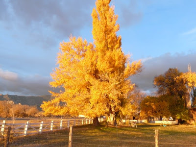 I woke up yesterday morning and saw dark clouds over the mountains. I figured we were in for another blah day, and I was right, except for about five minutes early in the morning, when the sun peaked through some clouds just over the horizon and lit up the trees. I'd estimate that over half the leaves in town have fallen off the trees, and with the impending bad weather, more are going to fall soon. So I snapped away, trying to capture some of the last glorious color on the trees.