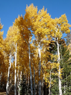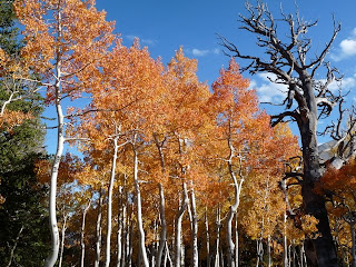 Later in the day we headed up high. We don't have many deciduous trees here in the desert, even in the mountains, so fall colors usually aren't especially dramatic. Nevertheless, the aspen trees provide little dashes of color amidst the dark green of the surrounding evergreens.