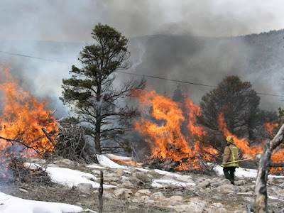 Yesterday this was the sight when I looked up at the mountain--lots of smoke rising into the air. If it seems a little late in the season to have a wildfire you're right, most of the wildland fires here occur from July through September, during monsoon season when we have a lot of dry lightning. This smoke is from a prescribed fire. Firefighters lit piles of slash on fire to reduce the fuel load in the woods.