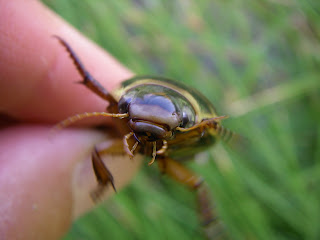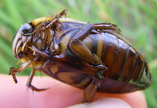 To me, just the name predaceous diving beetle sounds a little scary. And learning that they are cannibalistic adds to their creepiness. So it took me some time to work up the courage to pick up a beetle to examine more carefully. After all, I didn't want to become part of its prey, even if it was just a nibble.