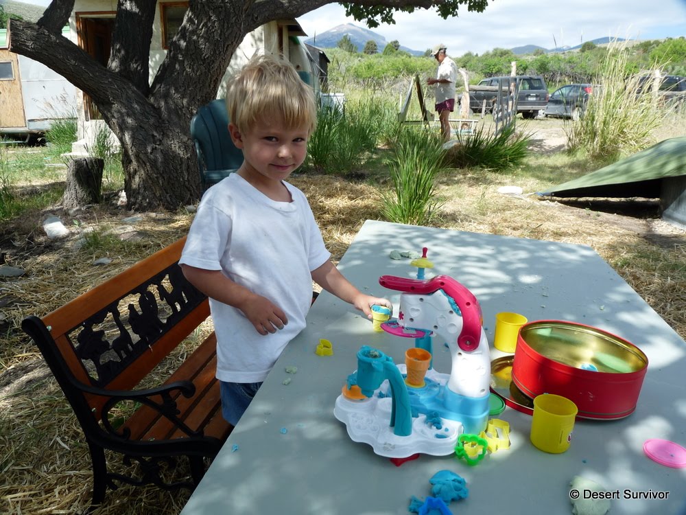 Nomi organized a play date up where she lives, and we were happy to accept. She has a whole area for a variety of activities, and Desert Boy was delighted to try out the play dough ice cream maker. Playing with different toys is always a real treat.