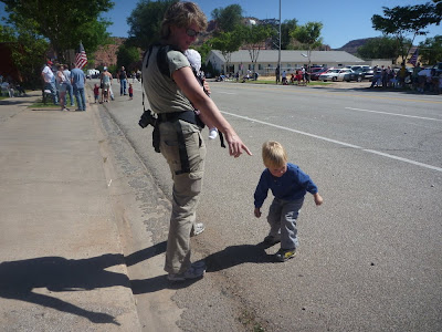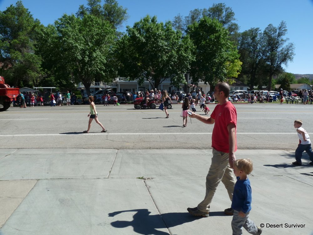 As we reached Kanab, we ran into a parade. I was ecstatic, I was hoping to see a parade, but I hadn't been able to find out in advance when any were. We don't get to go to that many parades, so I think it's a good experience for Desert Boy, plus they're just fun.