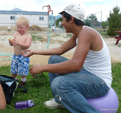 Desert Boy couldn't resist playing with the water toys. He did listen to his Mama, who told him that he couldn't get wet until later. But you can see the glitter in his eyes. He's already imagining the moment when he can splash and jump in.