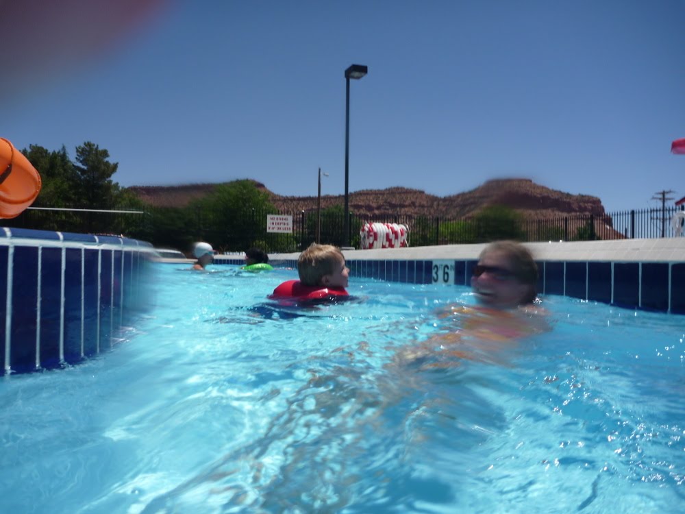 The Kanab city pool was the fanciest city pool I've ever been to. They had a huge kid section, with a playground set right in the middle of the water.
