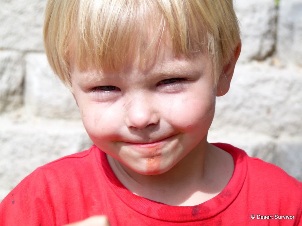 And because you can't have fun in our world unless you get dirty, Desert Boy went over to the fire pit and started playing with the charred bits of wood.