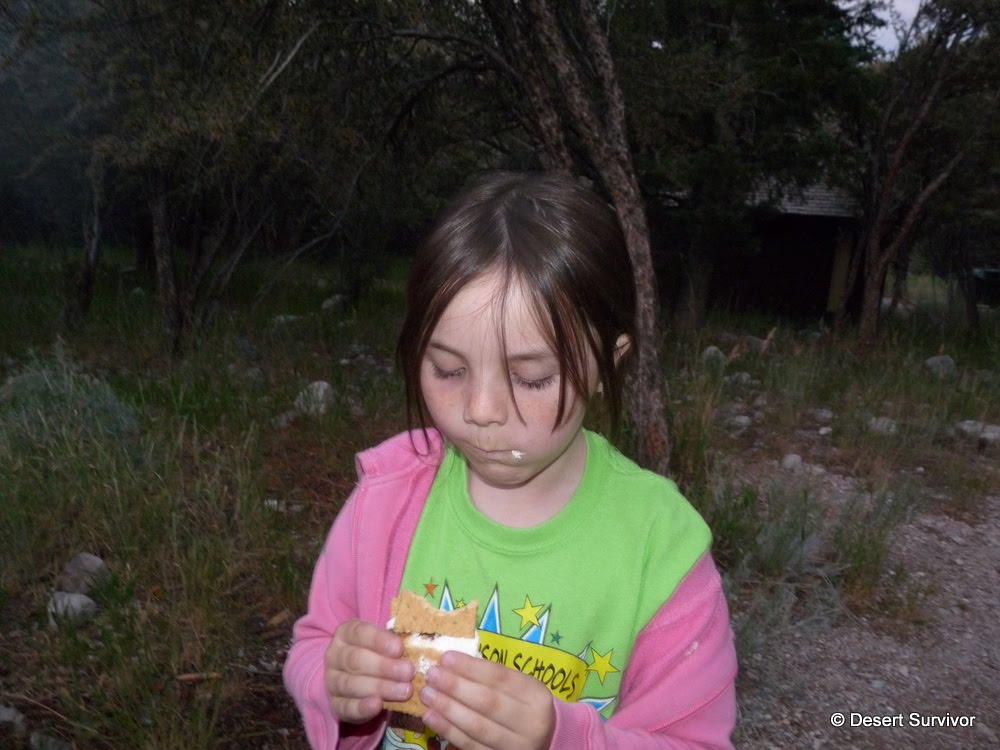 And then it was time to eat again. After all, one of the best parts of camping is eating. We put all the ingredients pictured above together to make some yummy S'mores.