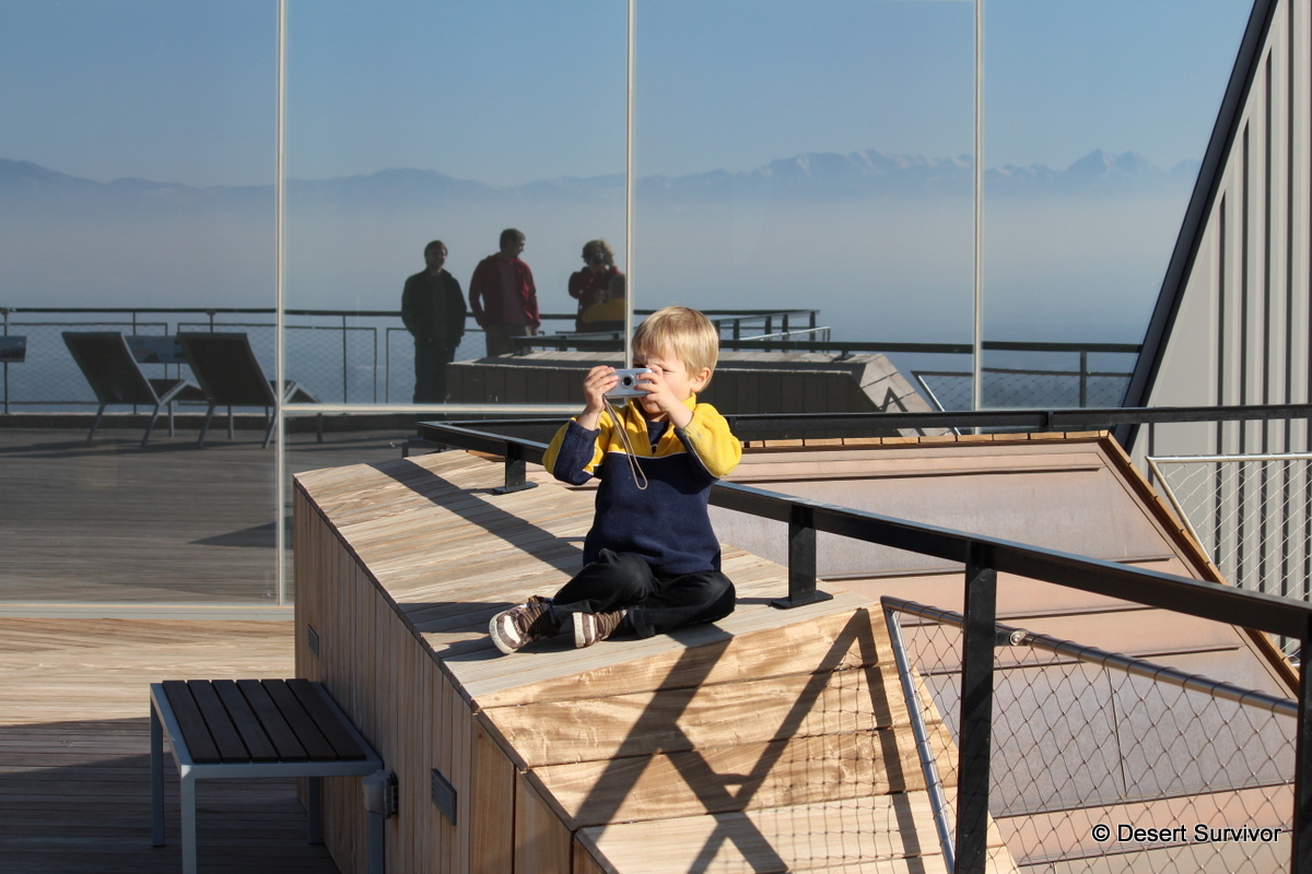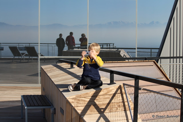 The top floor had an exhibit about weather, along with a nice outside deck. We took advantage of it to check out Salt Lake City's inversion, which obscured most of the view. We were grateful to be up in the sun.