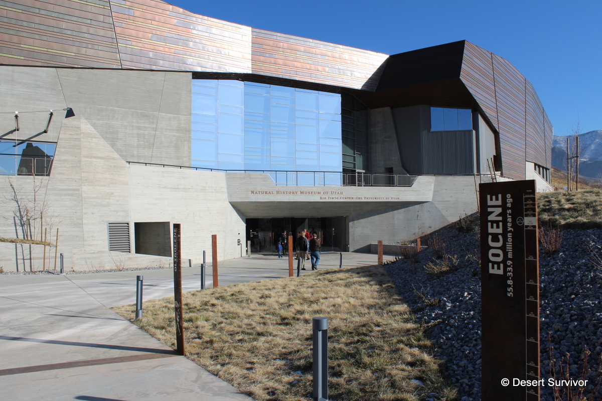 Last weekend we went to the Natural History Museum of Utah. It's in a brand new building, which made it a little hard to find, as our GPS and all the signs pointed to the old building (plus my city driving skills are a little lacking). If you're looking for it, it's at 301 Wakara Way, and follow the signs to Red Butte Garden.