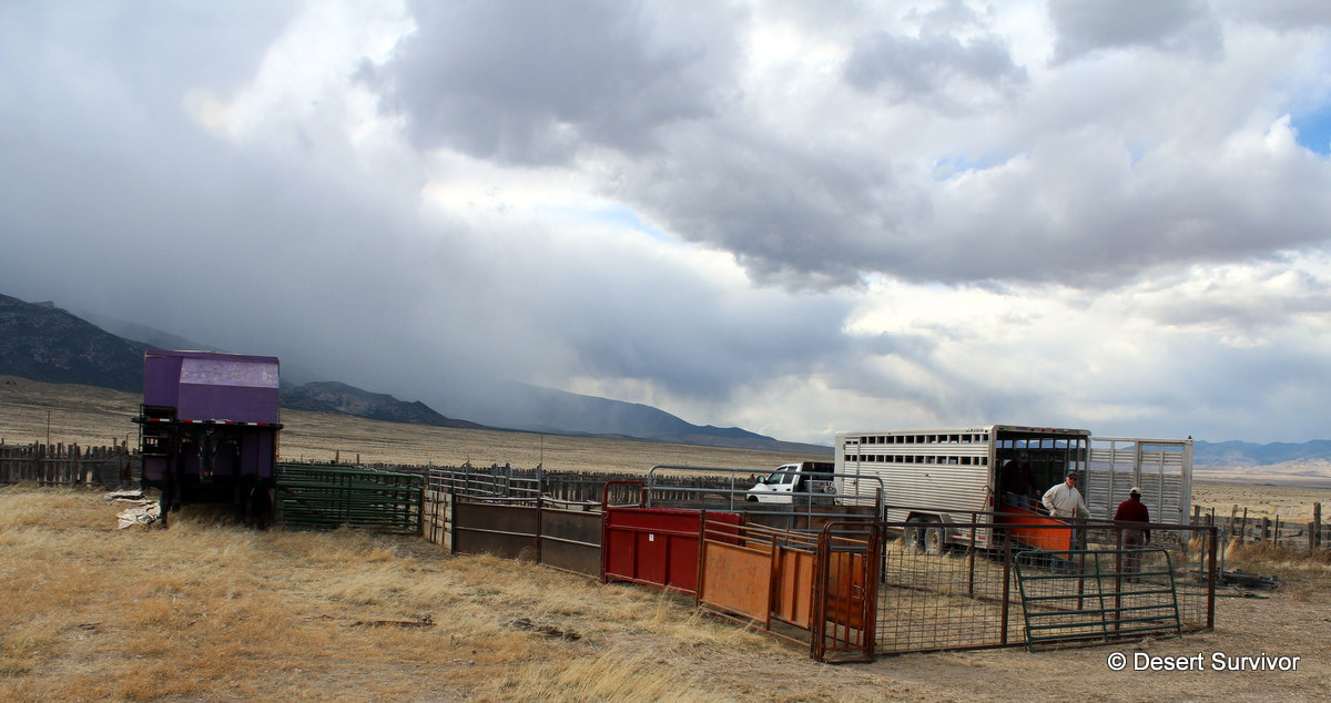 That gave us time to look around. They were unloading panels and setting them up to make a chute that came from the recently-arrived sheep shearing trailer.