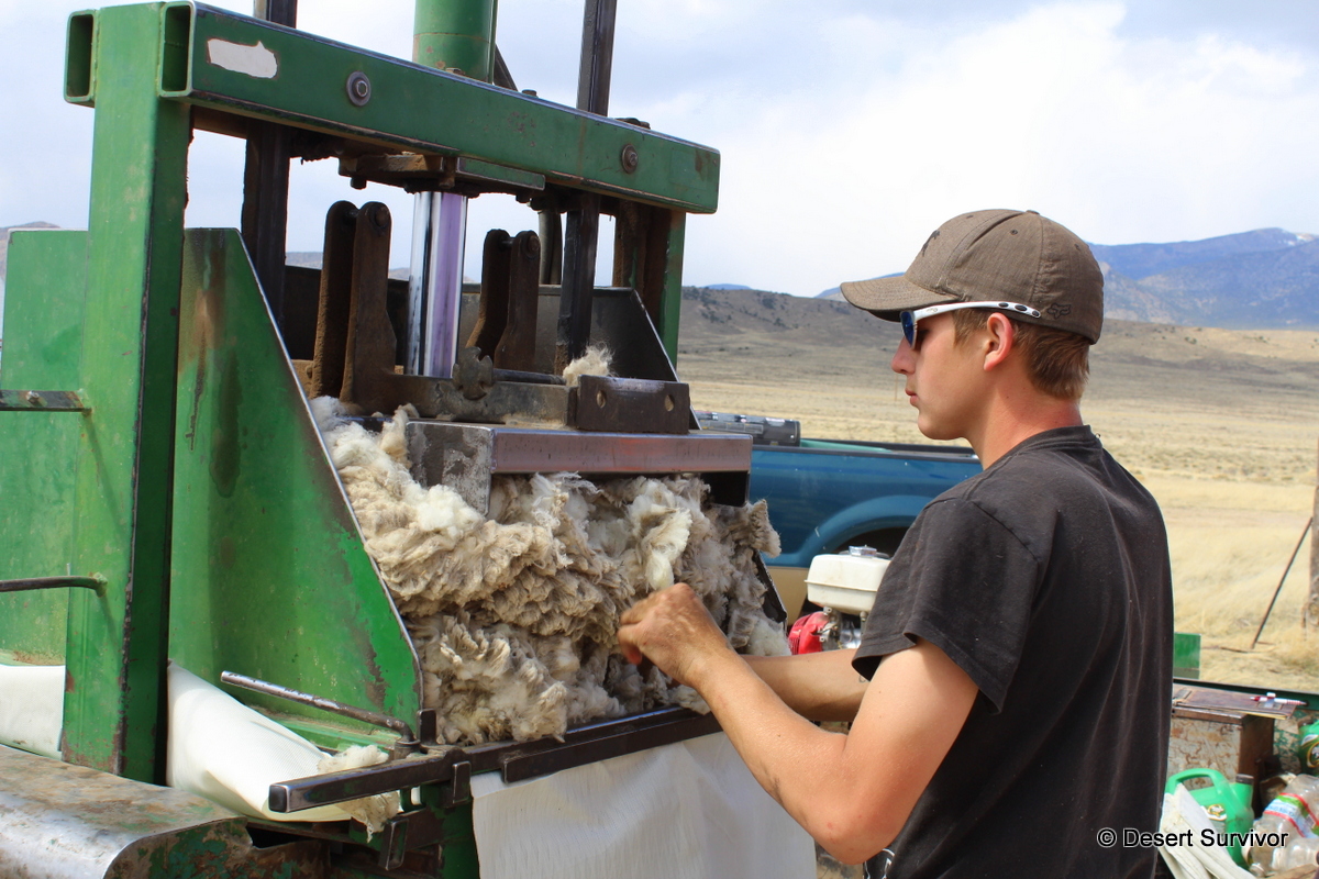 In addition to the shearers, he also employs folks to operate the wool press. This expensive machine compacts the wool.