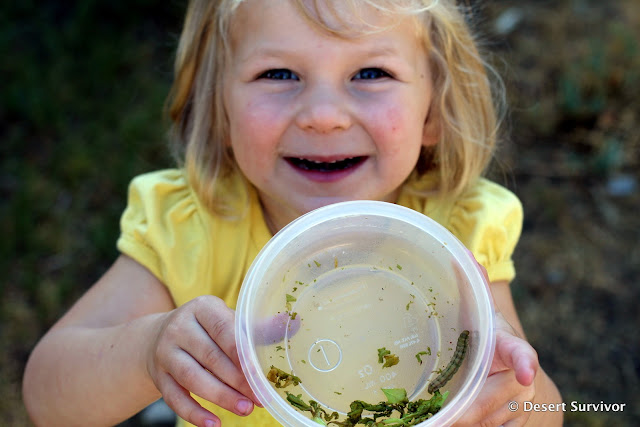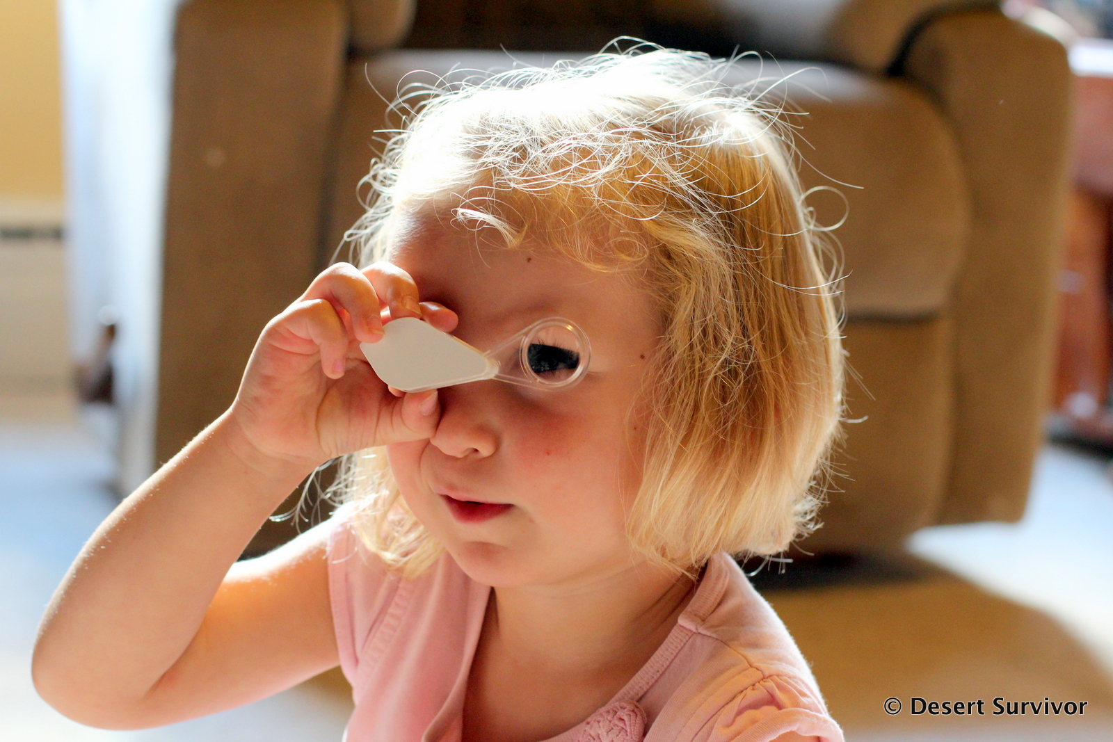Oh my goodness, that writing and those images on the quarters sure are small! We pulled out a magnifying glass to get a better look.Of course Desert Girl wanted in on the action. Her first job was to sort the eagle quarters from all the other quarters. She did a fine job of that.