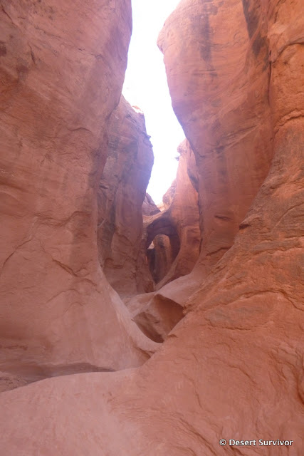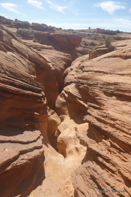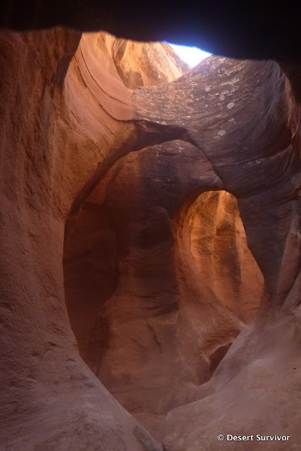 After many twists and turns we came out to a section with trees and took a snack break. This is where "the normal" entrance comes in. There are supposed to be moqui steps (steps made by Native Americans in the rock), but I missed them.