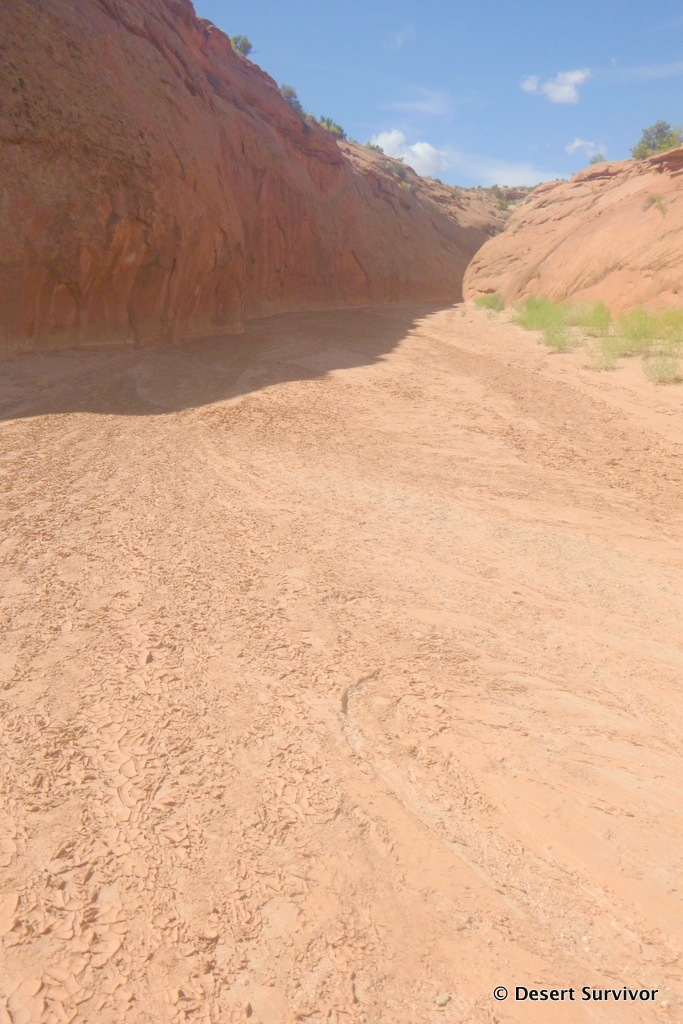 In about 15 minutes I came to this huge sandy wash. This had to be Spooky Canyon. It looked like a big watershed, so not the best place to be in a thunderstorm, when lots of water would be funneled down the wash.
