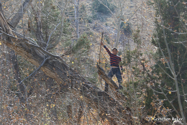 Then he climbed a tree that he had refused to climb when we were starting the trek.