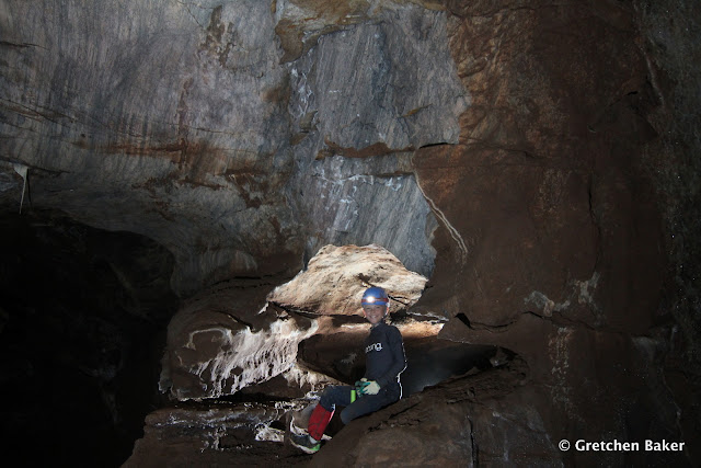 The next day, we met our trip leader and group to go to one of the Western Cave Conservancy (WCC) caves. The WCC works to protect and conserve caves. I've been a member for years, but had never been to one of the WCC caves, so was eager to go. The cave entrance was easy to negotiate, and we let the kids go first. They have quite a bit of cave experience. Plus, this trip for me was all about making sure the kids were having a good time and enjoying caving.