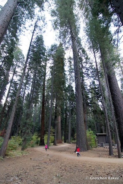 The kids were eager to spend their money, but the visitor center was closed. So we had to make do with a photo next to this neat sign. There are two campgrounds in the park, and maybe one day we'll get to hang out more with these amazing trees.