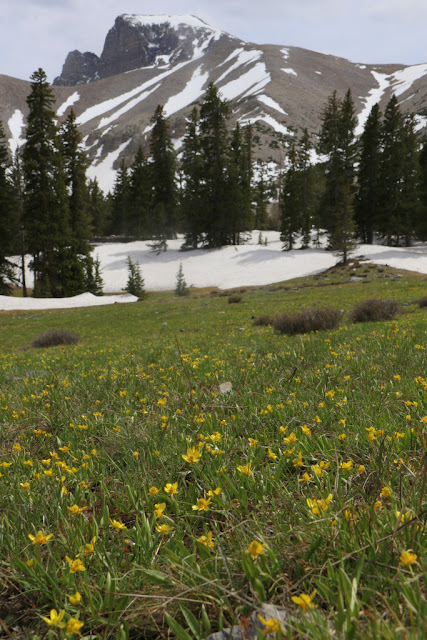 June rolled around, which meant that the temperatures were warming up and the kids didn't have school, so we could go on a fun hike. Jenny and I joined forces and took the kids up the Wheeler Peak Scenic Drive. We had heard that there wasn't much snow on the Summit Trail, which goes by Stella Lake, whereas the other high trails had lots of snow on them.